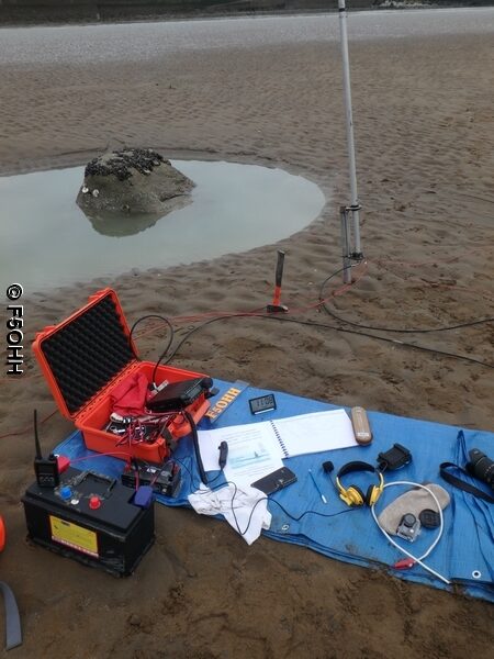 Comme évoqué précédemment, marée basse de coefficient 112, il lui reste une heure à descendre, j’ai du temps pour installer la station.